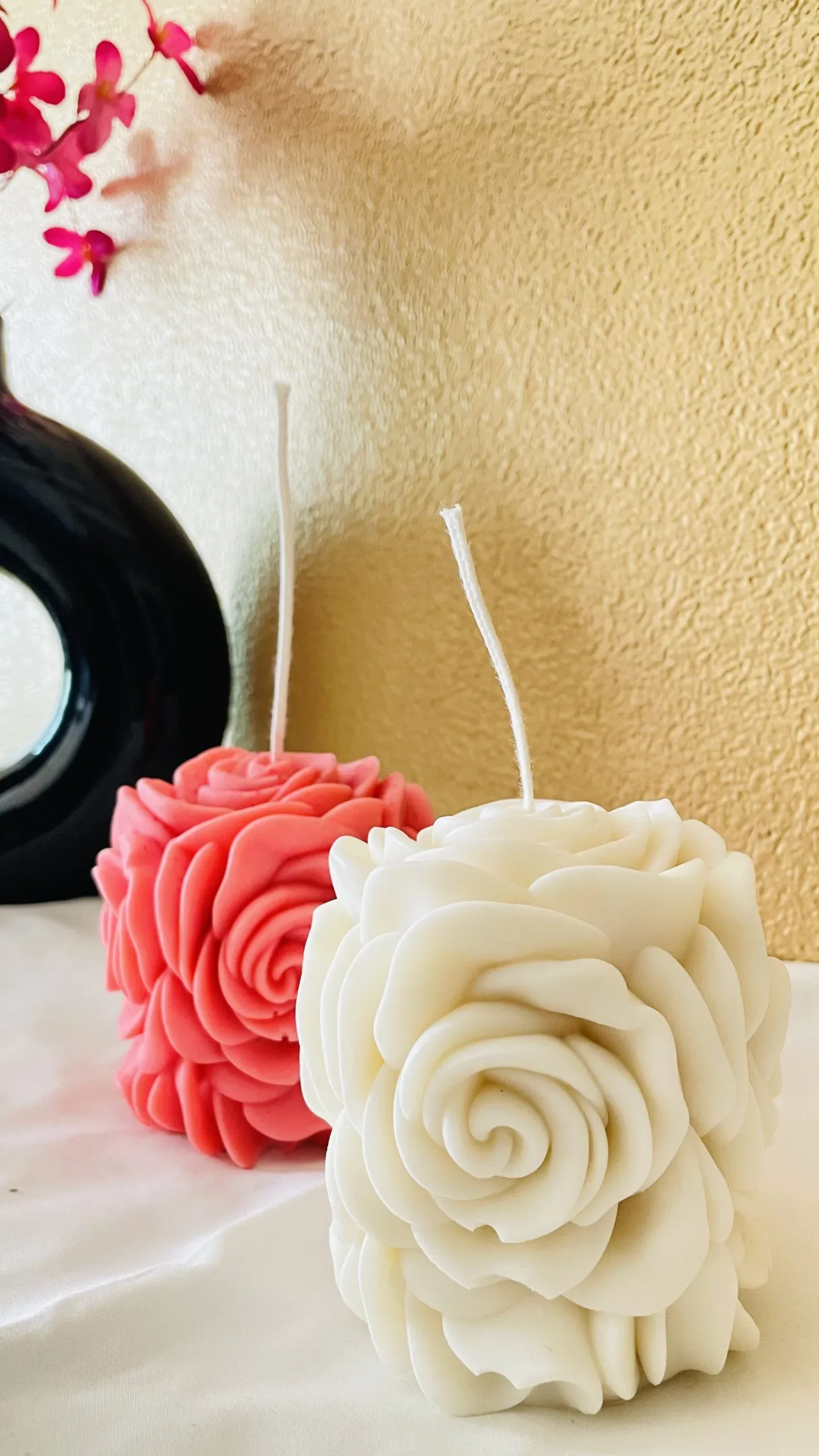 Rose Bouquet: “Romantic candle with delicate rose bouquet.”